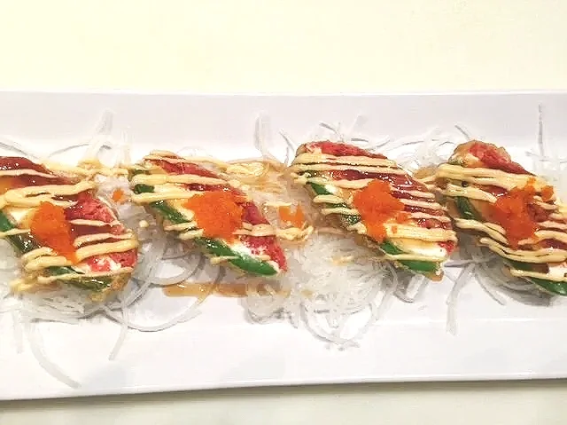 10 pcs nigiri, 6pcs tuna roll, 6pcs crunch roll