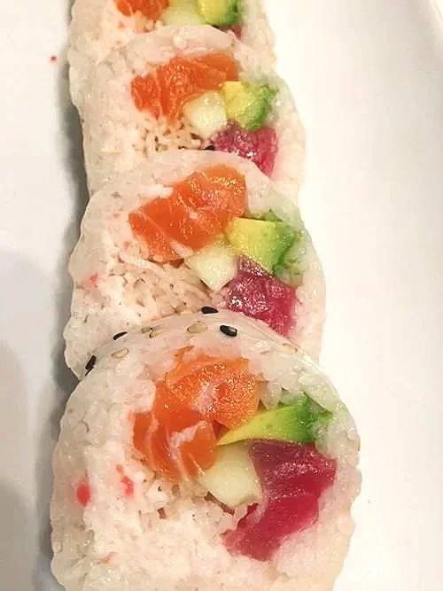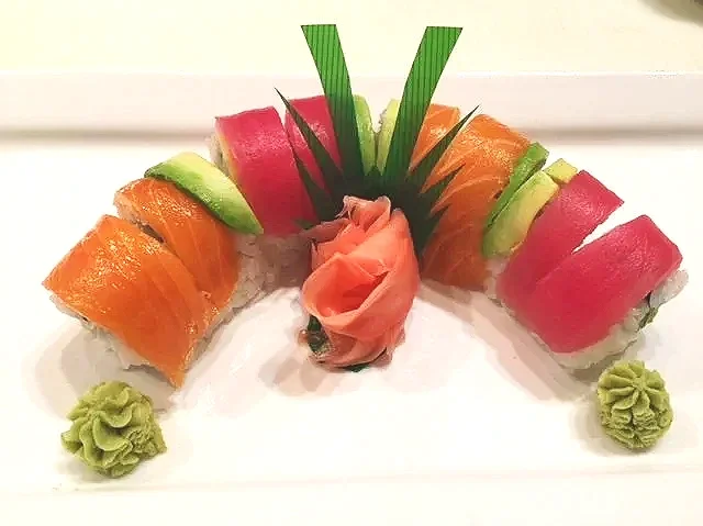 Nigiri 30 pieces, California Roll 8 pieces, Rainbow roll